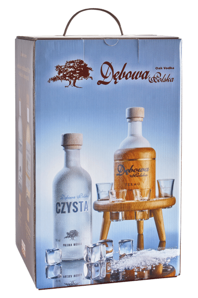 Wódka Dębowa Czysta 0,7 Stolik dębowy termo + 4 kiel.