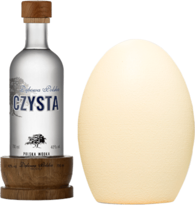 Wódka „Dębowa Polska Czysta w jajku” to nie tylko wyjątkowy trunek, lecz prawdziwe dzieło sztuki ukryte w nietypowym opakowaniu. Jajko, które zamyka tę wyjątkową wódkę, dodaje elementu niespodzianki i elegancji oraz oferuje niezapomniane doznania zarówno smakowe, jak i wizualne. Stojak w kształcie jajka, wykonany z gipsu, nadaje prezentacji niepowtarzalny charakter, a drewniana dębowa podstawa dodaje elegancji. Drewniana baza stanowi nie tylko eleganckie wykończenie, ale także nawiązuje do tradycji rzemieślniczych i naturalnych surowców, podkreślając charakter wódki.
