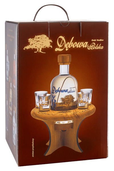 Wódka Dębowa Polska 0,7 stolik dębowy+4 kieliszki