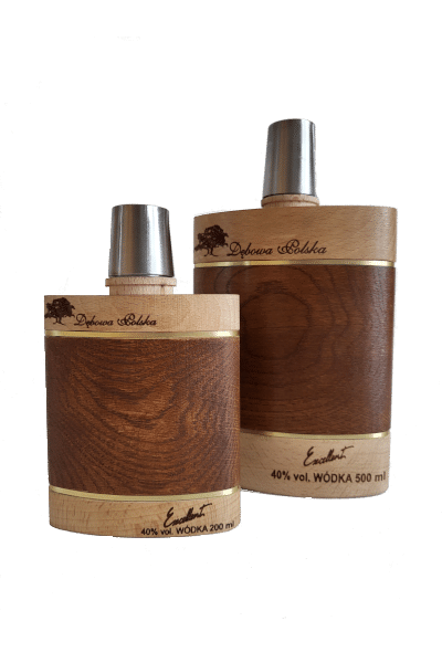 Wódka Dębowa Polska Soczewka kryje w swoim wnętrzu butelkę w całości otuloną, okładziną z drewna dębowego i bukowego z widoczną strukturą słoi. Całość zamknięta jest nakrętką ze stali szlachetnej, która może pełnić funkcję eleganckiego kieliszka. Jego przepiękna stylistyka i odwołanie do tradycji sprawia, że powinien stanowić wyposażenie wędrowca, podróżnika, miłośnika przyrody czy myśliwego oraz każdego kto ceni piękno i estetykę.