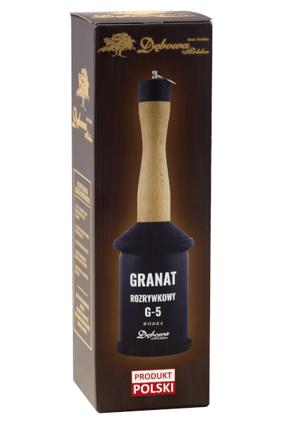 Wódka Dębowa Granat detonuje ogromną moc rozrywki. Kategorycznie zabrania się pozostawiania niezabezpieczonego granatu bez nadzoru. Dodatkowo całość zapakowana jest w estetyczne etui z solidnej tektury, dzięki czemu od razu nadaje się do wręczenia jako prezent.