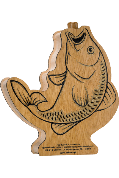 Wódka Dębowa 0,5 Złota Rybka to prawdziwa gratka dla każdego wędkarza lub zawodowego rybaka, ale nie tylko! Wyjątkowe drewniane opakowanie w kształcie złotej rybki może stanowić doskonały pomysł na ozdobę barku, jak i prezent dla zapalonego wędkarza. Nie sprawdzaliśmy, ile życzeń jest w stanie spełnić. Dodatkowo całość zapakowana jest w estetyczne etui z solidnej tektury, dzięki czemu od razu nadaje się do wręczenia jako prezent. To nie tylko wódka wędkarska, to symbol pasji i piękna natury. Włącz się do świata Dębowej Polskiej i odkryj smak przygody, którym możesz się delektować i podzielić z przyjaciółmi podczas wyjątkowych chwil spędzonych nad wodą. Czy jesteś gotów na tę niezapomnianą podróż?