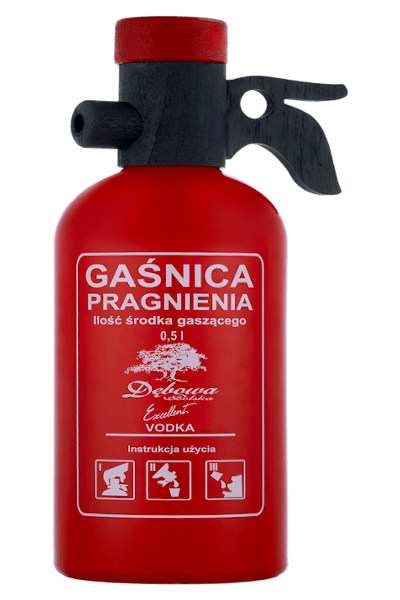 Wysokogatunkowa Excellent Wódka Dębowa Gaśnica znajduje się w unikatowej czerwonej butelce z charakterystycznym nadrukiem. Wprawdzie wódka w kształcie gaśnicy nie nadaje się do ugaszenia pożaru, ale wbrew pozorom ugasi największe pragnienie. Proponujemy rozmiary począwszy od miniaturki aż do potężnej pojemności 4,5 litra. Aby użyć, wystarczy zdjąć nakrętkę zamykającą butelkę. Wbrew pozorom to nie wszystkie propozycje, sprawdź też inne produkty w klimacie wódka strażacka – Hydrant.